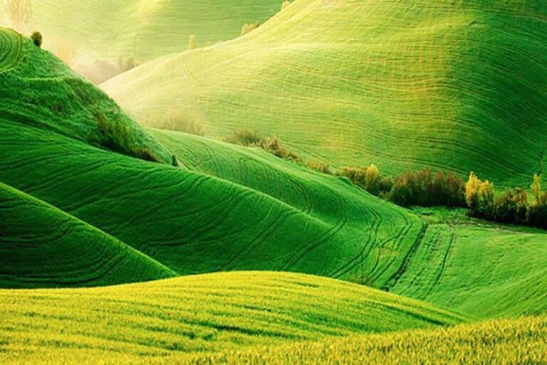 Berms are essentially mounds of soil that are either naturally occurring or man-made. They are very useful if properly designed and installed in creating landscape interest, directing drainage, screening views and enhancing plantings. The photo above is obviously an extreme example but it shows the interest landforms can provide. A proper landscape design should assess whether berming is beneficial and to what degree berms should be incorporated into the landscape. It is critical that, if man-made, they flow smoothly and naturally with the surrounding landform and effectively accomplish the desired screening, drainage control and plant display.